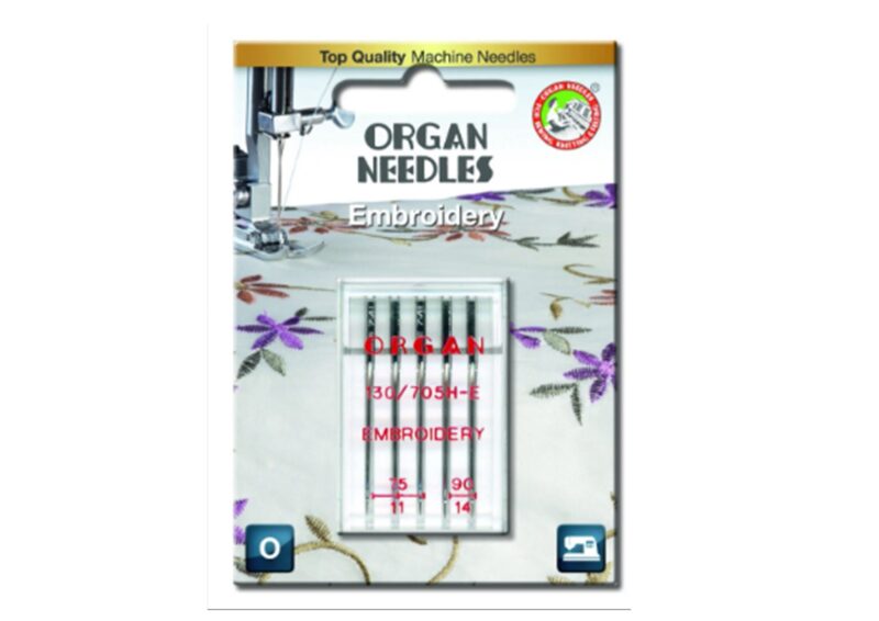Agujas para maquina bordadora de mesa, de primera calidad marca ORGAN, en presentacion de blíster por 5 agujas Nº11 y de 5 agujas:3 en Nº11 y 2 en Nº14